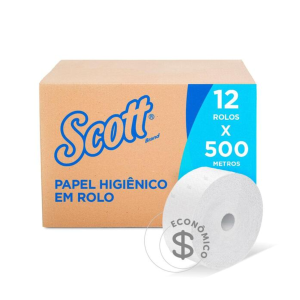 Papel Higiênico Scott Basic Folha Simples 500m – Caixa com 12 Rolos