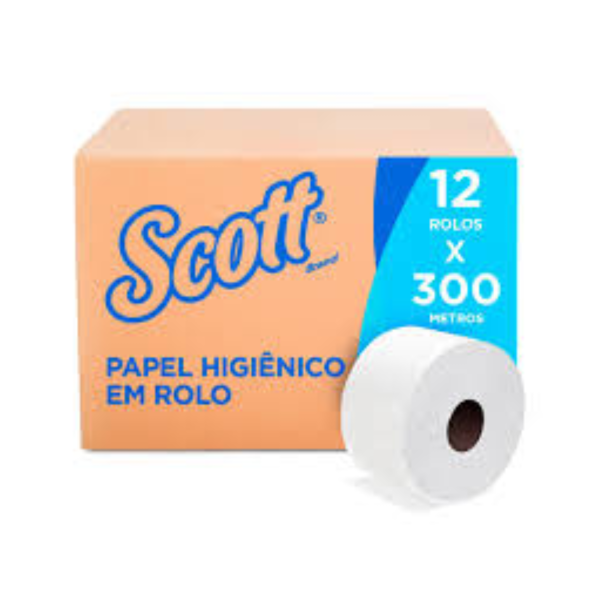 Papel Higiênico Scott® Rolo 300m Folha Simples – Caixa com 12 Rolos
