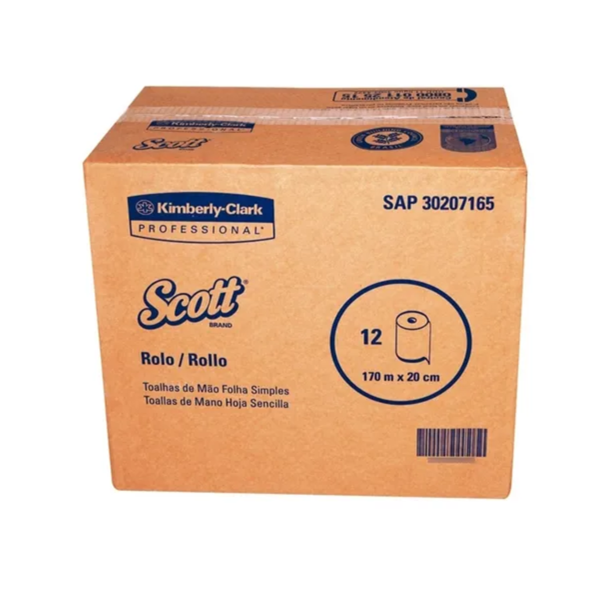 Papel Toalha em Rolo Scott 170m Folha Simples – Caixa com 12 Rolos