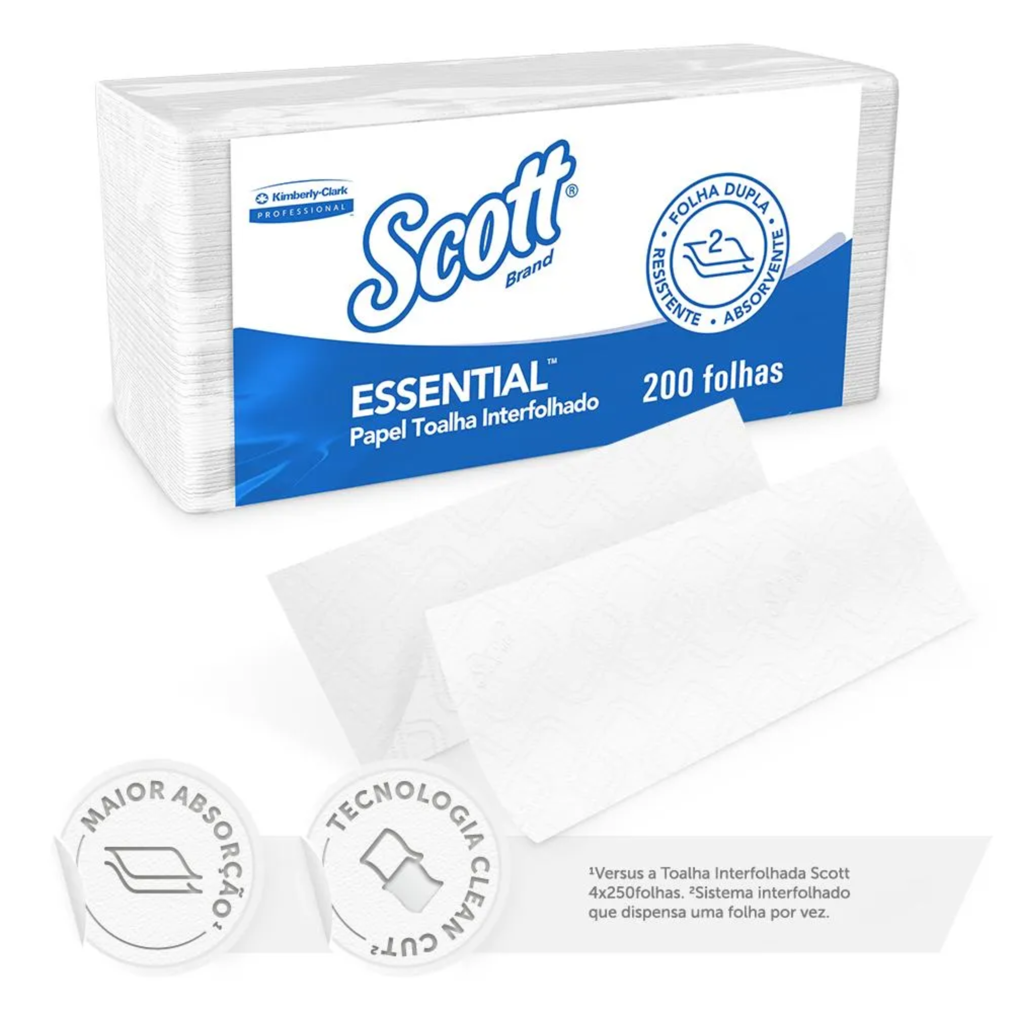 O papel toalha interfolhado scott Essential de folha dupla é a solução premium da Kimberly-Clark Professional® para ambientes que exigem máxima higiene e conforto. Isso porque este produto, que substitui o antigo Kleenex com ainda mais qualidade, combina uma maciez superior com um altíssimo poder de absorção. Consequentemente, ele oferece uma experiência de uso muito mais agradável, sem esfarelar ou rasgar nas mãos.